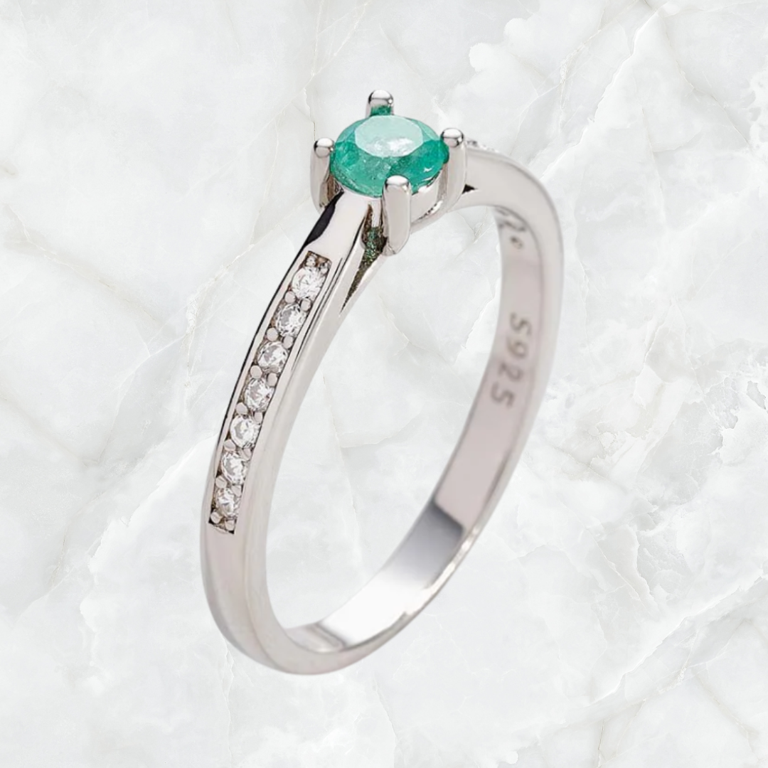 Anillo solitario personalizado con esmeralda natural certificada, fabricado en plata 950, tallas de 4 a 13 disponibles. 2-4 días hábiles de fabricación.