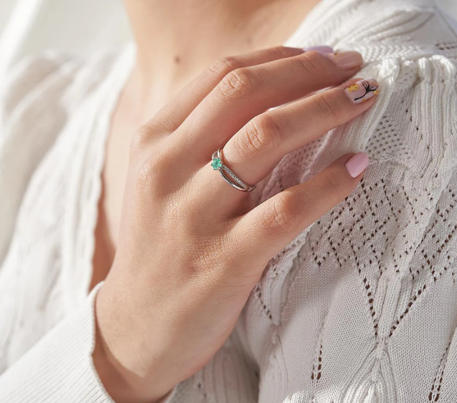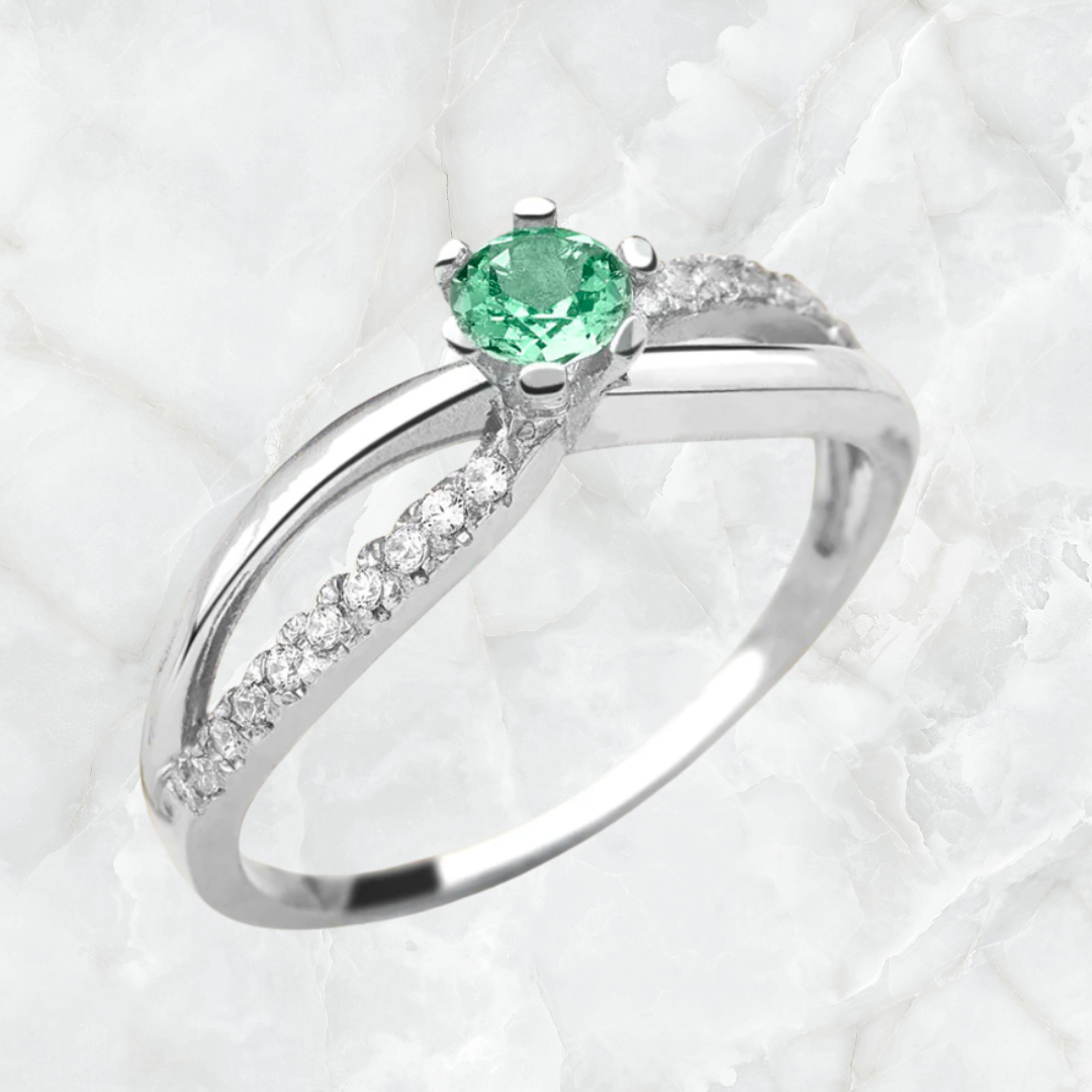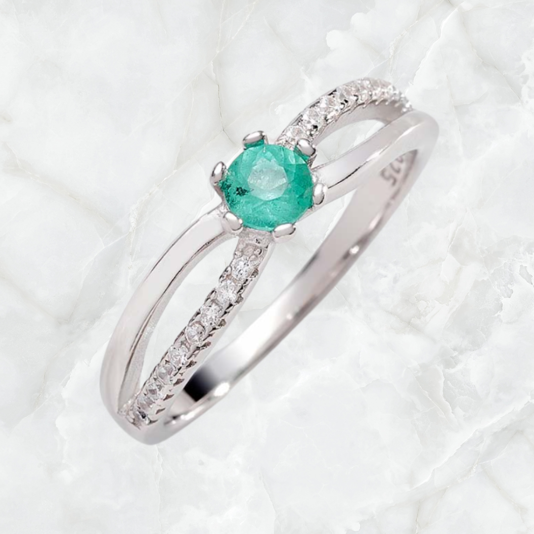 Anillo solitario personalizado con esmeralda natural certificada, fabricado en plata 950, tallas de 4 a 13 disponibles. 2-4 días hábiles de fabricación.