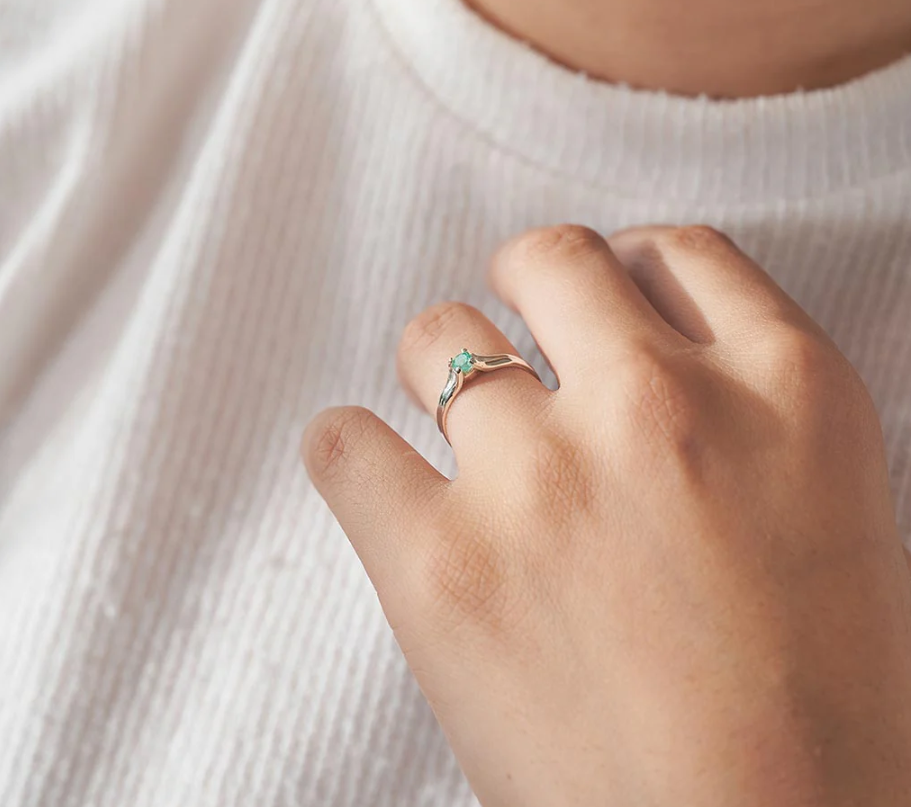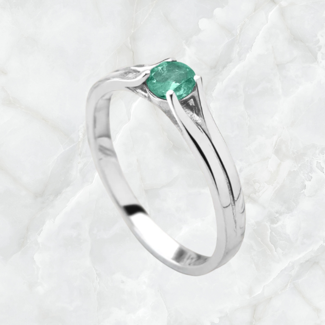 Anillo solitario personalizado con esmeralda natural certificada, fabricado en plata 950, tallas de 4 a 13 disponibles. 2-4 días hábiles de fabricación.