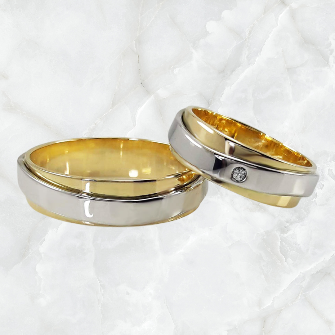 Argollas fabricadas en plata 950 + Oro 18k - 1.5 grm aprox de oro , ( tallas 4 a 11) disponibles, incluyen: estuche, grabado laser, envíos a todo Colombia.